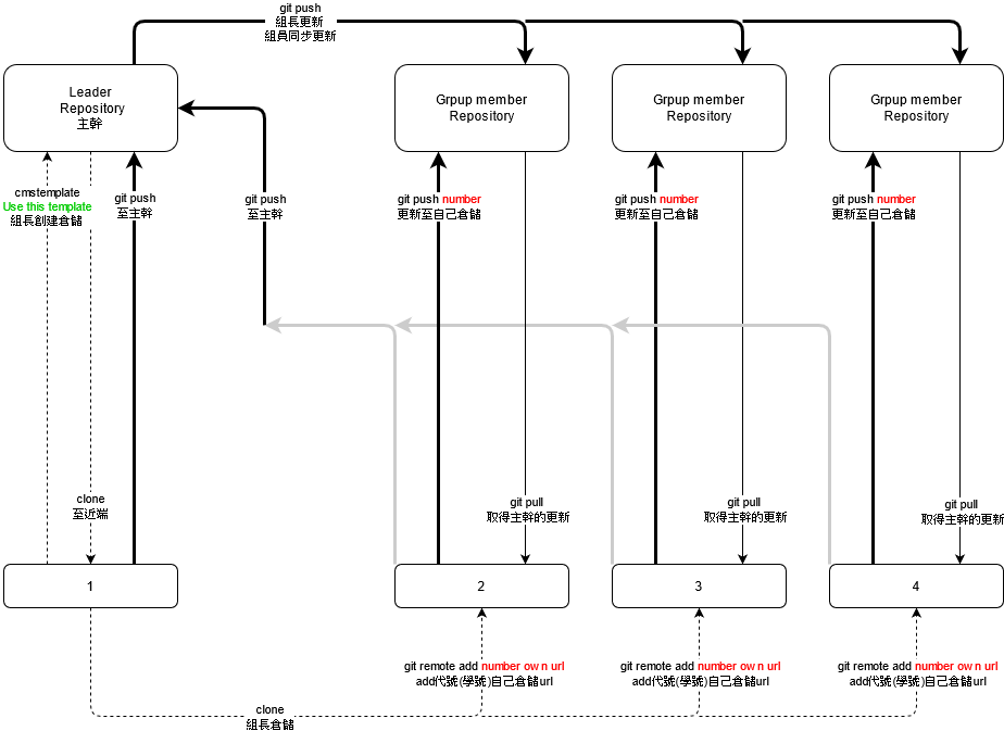 組員在自己倉儲中Setting->Manage access->Invite a collaborato組長(組員不用互邀)
